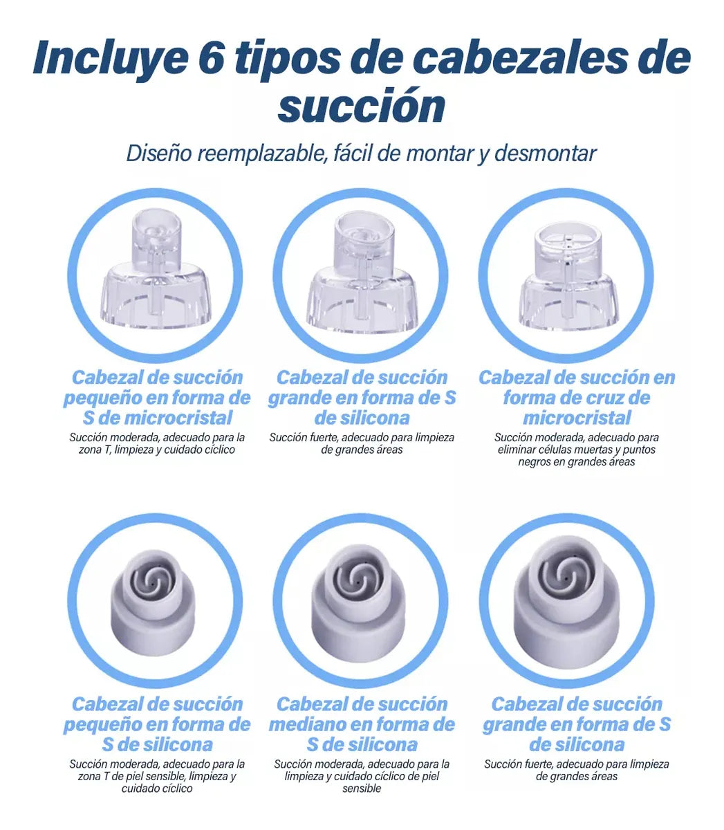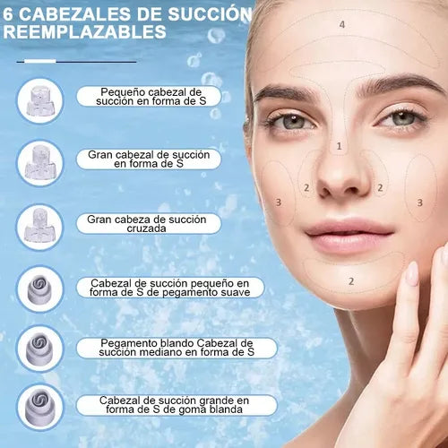 Su innovador sistema combina succión potente con agua, lo que limpia profundamente, hidrata y cuida tu piel sin irritaciones. Ideal para todo tipo de piel, incluso la sensible.